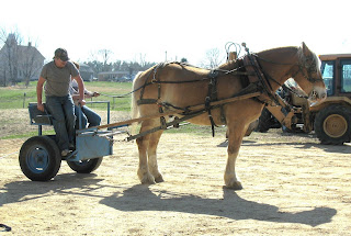 Linda and I went to Easter sunrise service this morning at 5:45. The sun actually showed itself and looked like a ball of fire coming up over the trees. We then went to the church for breakfast, came home, fed horses and put them out, cleaned stalls, played some Wii games, took the orange bug out for a ride thru the woods. I went to work and Fred and Linda went to our friends house for Easter dinner.